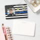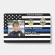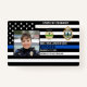 Identifiez facilement vous-même et votre agent de police au service de police avec ces mince drapeaux de ligne bleue personnalisés photo, logo, code à barres, badges de carte d'identité de la police. Personnalisez avec la photo de l'officier de police, nom, numéro d'insigne, détails et service de police. Customisez avec le logo de votre poste de police, le sceau d'état et le code barre. Ce mince badge de carte d'identité de police de ligne bleue est parfait pour tous les policiers, les forces de l'ordre, le sergent, le chef, le capitaine et le lieutenant. DROIT D'AUTEUR © 2020 Judy Burrows, Black Dog Art - Tous droits réservés. Police Police Enforcement Officer Photo Logo Police ID Badge