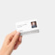 Cette conception offre un espace réservé pour votre logo, numéro d'identification, photo et code à barres.
