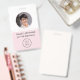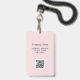 Élevez l'image professionnelle de votre entreprise avec un simple badge d'identification de logo rose employé avec une photo d'employé et un code QR au dos. La combinaison de couleurs douces rose et gris en fait un endroit idéal pour un look propre et moderne. Customisez-le avec la photo de l'employé, le logo de l'entreprise, le code QR, les détails de l'entreprise et les titres de l'emploi pour un look poli. Conception par Ana Garza/Kardz Studio. Si vous avez des questions, n'hésitez pas à me contacter par l'intermédiaire du Conversation Zazzle.