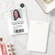 Un badge d'identification photo moderne, professionnel et mignon couleur d'eau dinosaures pédiatre médecin ou infirmière avec logo et code barre.