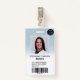 Un badge d'identité photo moderne, et professionnel pastel blue ombre, avec logo et code barre.