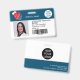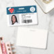 Un badge d'identification photo d'infirmière moderne et professionnel élégant avec logo et code-barre disposition horizontale avec coeur médical rouge modifiable, stéthoscope.
