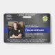 Identifiez facilement vous-même et votre agent de police au service de police avec ces mince drapeaux de ligne bleue personnalisés photo, logo, code à barres, badges de carte d'identité de la police. Personnalisez avec la photo de l'officier de police, nom, numéro d'insigne, détails et service de police. Customisez avec le logo de votre poste de police, le sceau d'état et le code barre. Ce mince badge de carte d'identité de police de ligne bleue est parfait pour tous les policiers, les forces de l'ordre, le sergent, le chef, le capitaine et le lieutenant. DROIT D'AUTEUR © 2020 Judy Burrows, Black Dog Art - Tous droits réservés. Police Officielle Application de la loi Carte d'identité photo