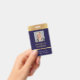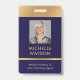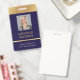 badge photo moderne en bleu marine et or avec espace pour une photo de profil personnalisée, titre de poste, coordonnées, services et code barre. Cet élégant badge de nom d'employé présente des effets arrière - plan bleu foncé et faux or avec texte entièrement modifiable et une photo.
