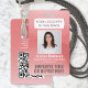 Représentez votre entreprise avec style en fournissant au personnel des badges d'identification avec photo modernes et professionnels. Le logo, la photo, le code QR et tout le texte de ce modèle sont faciles à personnaliser. Pour créer votre propre code QR à l'aide du générateur, il suffit de saisir l'URL du site Web dans le modèle. Le design comporte également un fond dégradé ombré rose avec des arcs courbes uniques, votre logo d'entreprise, une photo carrée, ainsi que le nom et le titre de l'employé. Il convient comme outil de marketing promotionnel ou comme laissez-passer pour un événement, tel qu'une conférence, un concert, un festival ou une soirée VIP. Il peut apporter de l'organisation et de la sécurité au personnel de l'entreprise, tout en présentant l'image de marque de l'entreprise avec une apparence élégante et classique.