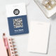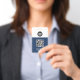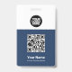 Personnalisez facilement ce badge personnalisé de nom d'employé avec code Qr, code de barre d'analyse et logo d'entreprise. Un design d'entreprise simple en bleu marine et blanc entièrement personnalisable en tailles avant et arrière, sans-serif polices de base et moderne et un look professionnel et clair. Disponible avec cordon, clip métallique ou avec rétractable. Pas de commande minimum.