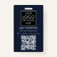 Un badge d'entreprise minimaliste moderne et personnalisé avec logo d'entreprise et code QR. Personnalisez avec votre logo, votre code QR et des détails pour créer votre propre badge d'affaires bleu et blanc élégant. Customisez encore plus avec un arrière - plan de couleur ou une police personnalisée.