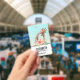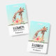 Nom badge avec un dessin mignon en aquarelles d'une maman et de la petite girafe. La girafe mère se repose la tête au-dessus de la petite girafe, aimante et adorable. Joli bouquet de fleurs d'aquarelle rose, jaune, vert placé sous cette paire de chatons. Un arrière - plan dégradé de bleu turquoise délicat qui se fond dans une couleur sable brun.