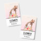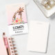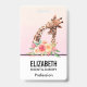 Nom badge avec un dessin mignon en aquarelles d'une maman et de la petite girafe. La girafe mère se repose la tête au-dessus de la petite girafe, aimante et adorable. Joli bouquet de fleurs d'aquarelle rose, jaune, vert placé sous cette paire de chatons. Un arrière - plan dégradé créé avec une couleur rose douce qui se fond dans une couleur orange clair et achalandée.