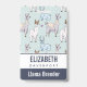 badge de nom personnalisé avec un motif mignon avec lamas fantaisie. L'un est allongé, l'autre tient une fleur dans la bouche, et l'autre vous regarde de manière suspecte. Ces animaux ont beaucoup de charme. Placez-vous sur un arrière - plan à pois vert.