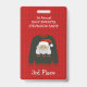 Honorons ceux qui ont participé et fait de cette célébration un événement amusant. Ce badge coloré de 3e place pour la fête de Noël au pull moche est pour le finaliste ou la deuxième place. Le design présente un fond en laine rouge tricotée de Noël et décoré avec un Père Noël vraiment moche mais aussi vraiment mignon avec la mention HO HO HO.
