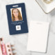Badge d'identification de photo d'employé bleu marine avec logo de société. Remplacez la photo par la vôtre et modifiez le texte. Facile à ajouter le logo de la société. Badge d'employé moderne et simple.