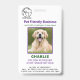 Identifiez facilement vos meilleurs employés ou les invités de votre entreprise ami des animaux avec ces badges d'identification photo de chien super mignons. Personnalisez notre badge avec le logo de votre organisation, le nom de votre entreprise, la devise, la photo de l'animal, le nom ou le titre de l'emploi. Personnalisez le verso avec toute autre information sur votre organisation. Ces badges d'identification pour les entreprises d'animaux sont parfaits pour les entreprises qui permettent aux employés d'amener leurs meilleurs amis au bureau, les soins aux animaux et les gardes d'animaux. Les couleurs sont facilement personnalisables pour correspondre à votre logo, dans l'option de personnalisation. N'hésitez pas à nous contacter si vous avez besoin d'aide pour une conception spéciale. COPYRIGHT © 2021 Judy Burrows, Black Dog Art - Tous droits réservés. Badge d'identification de chien d'employé d'entreprise d'animal personnalisé avec photo