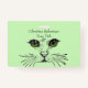 Ce nom ou badge d'identification est vert clair sur l'avant et le dos avec un dessin noir d'un joli visage de chat avec des chuchotements et des yeux vert vif. Customisez votre nom et vos informations aux modèles.