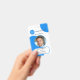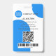 Carte d'identité photo avec photo personnalisée et logo sur un motif rétro bleu et blanc coloré. La zone de texte inférieure sur le devant affiche une forme rectangulaire, que vous pouvez mettre à l'échelle dans l'éditeur avancé. À l'arrière, vous pouvez ajouter un code à barres personnalisé ou un code QR et des textes supplémentaires (ou supprimer les modèles). Idéal pour créer une présence captivante.