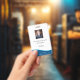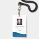 Badge d'ID professionnel bleu employé avec code ba