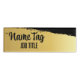 Style de balise de nom contemporain en noir et or avec une police unique.