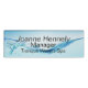 Belle étiquette d'employé sur le thème de l'eau bleue. Le texte noir dans trois champs différents est prêt à être personnalisé pour votre entreprise.