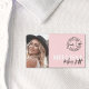 Modern Makeup Artist Name Tag. This clean and stylish design features a photo on the left side, shown in color but easily changeable to black and white using the photo filter tool. You can keep the sample image or replace it with your own portrait for a personalized touch.