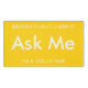 Boutons jaune vif "Demandez-moi" pour les bénévoles, les enseignants, les guides, les organisateurs d'événements spéciaux, tels que les mariages, les foires artisanales, les salons d'artisanat, les salons de maison et de jardin, les événements caritatifs, les activités commerciales et les fonctions corporatives. Le texte est une couleur d'ivoire.
