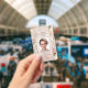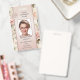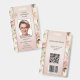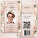 Badge d'identification de photo professionnel chic féminin avec votre photo et logo personnalisés sur un fond floral rose. Au dos, vous pouvez ajouter un code à barres personnalisé et un code QR ainsi que des textes supplémentaires ou supprimer les modèles.