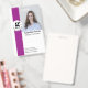 badge d'identification d'employé rose moderne et audacieux avec une grande photo personnalisable, votre nom, titre, logo et code QR scannable. Inclut le numéro d'identification imprimé et l'adresse de retour au verso. Idéal pour les consultants, les employés et les espaces de travail professionnels.