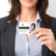 badge d'identification noir et blanc classique avec photo et logo à l'avant, et adresse de retour si perdu à l'arrière du badge. Cet article professionnel comprend également l'emplacement de l'entreprise, le titre de l'emploi et le numéro d'identification de l'employé, ainsi qu'une conception simple en noir et blanc des blocs de couleur.