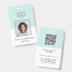 Un logo professionnel de l'entreprise Badge avec photo, nom et titre de l'employé sur le devant avec logo de votre entreprise. Un jeu de couleurs bleu et blanc d'oeuf d'aqua robin cool ajoute un aspect distinctif au badge. Le dos de l'insigne a un modèle pour votre site web de l'entreprise code QR et des informations supplémentaires de l'entreprise comme souhaité. Tout le texte peut être modifié selon vos préférences.