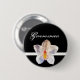 Bouton ID Mariage Groomsmen. Orchidée blanche sur fond noir photographiée et dessinée par TDSwhite sur www.ArtisticPostage.com.