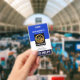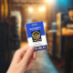 Un design de colonne simple bleu et blanc. Dans la couche bleue supérieure se trouve votre nom et titre de fonction prestigieux. En dessous se trouve une option de photo pour des photos de 1 000 x 1 200 pixels. Suit ensuite le numéro d'employé, les coordonnées et une légende "Besoin d'aide ?" près de la base. Modifiez le slogan pour l'adapter à vos besoins de service.