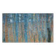 Il s'agit d'oeuvres de Gustav Klimt, Beech Grove 1, 1902. Les oeuvres d'art dépeignent une forêt dense de grands bouleaux, minces, aux troncs pâles marqués par des lignes verticales foncées. Le feuillage est dépeint dans les tons bleu, vert et jaune, ajoutant un sens de profondeur et de vibrations à la scène. Le sol de la forêt est recouvert d'une couche de feuilles orange et marron, créant un contraste saisissant avec les tronçons d'arbres plus légers. La composition globale utilise des techniques pointillistes et impressionnistes, donnant à l'image une apparence vivante et texturée. La verticalité des arbres souligne la structure sereine et rythmique de la forêt.