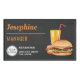L'illustration de Destei de quelques fast-food, dont une boisson orange avec une paille rouge, un hot dog avec ketchup et moutarde sur le dessus et un hamburger avec un pain de sésame rempli de fromage, laitue, boeuf, tomate, ketchup et cornichons. La couleur arrière - plan est gris foncé, presque noir. Il y a plusieurs zones de texte personnalisables et un endroit pour mettre un logo d'entreprise. Personnalisez ce design pour le rendre adapté à vos besoins.
