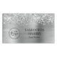La parties scintillant argent brillant faux filé met en évidence sur le bord supérieur sur une fausse feuille gris argent métallique. Ajoutez un nom d'employé, un titre ou un autre texte ainsi qu'un logo d'entreprise. La parties scintillant et la feuille sont créées avec des graphiques numériques qui s'impriment comme votre photo sur votre étiquette de nom.