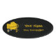 Mini mélangeur de béton avec roues. Icône vectorielle avec couleurs personnalisables. Couleur arrière - plan personnalisée. Champs de texte personnalisés pour le nom et l'occupation.