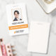 Un badge d'identification professionnel moderne comportant la photo, le nom, la profession d'un membre du personnel. Le badge d'identification moderne comprend également le nom et le logo de l'entreprise. La couleur de tout élément de conception de ce badge d'identification peut être personnalisée.