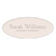 Des étiquettes de nom modernes et tendance avec votre nom et titre imprimés en marron sur un arrière - plan rose pâle.