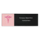 Oncologie Le personnel médical conçoit des étiquettes de nom créées avec un symbole de caducée métallique rose et un espace de nom pour votre raison sociale et votre employé.
