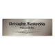 This professional magnetic-back name fea name and title in black over a matte faux silver metallic background. Below the text is a horizontal row of descending size ads. Personalize the text fields or click customize to select a font style, size, and color you prefer