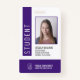 Un badge d'identité étudiant moderne. La conception présente le logo, le nom et la ligne de balise de votre école. Il montre une photo d'identité étudiante de bonne taille. Les informations peuvent être personnalisées et comprennent jusqu'à présent le nom de l'étudiant, son numéro d'identification, ainsi que la date de délivrance et la date d'expiration. Une barre sur le côté droit indique la désignation de l'étudiant. Travaillerait aussi pour les enseignants. Tous les éléments de conception peuvent être personnalisés en couleur pour convenir à votre école. Couleur : violet