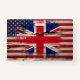 L'insigne en plastique frais avec une conception américaine britannique de fusion comportant une copie du drapeau américain et du drapeau des syndicats a fusionné ensemble sur le bois rustique avec la peinture épluchant.