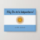 Célébrez le jour de l'indépendance de l'Argentine avec ce bouton, qui présente les couleurs bleu et blanc emblématiques du drapeau argentin avec salutation et date sur les portions bleues du drapeau. ¡Feliz Día de la Independencia! Design © W.H. Sim. Voir plus sur zazzle.com/expressionsoccasions