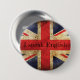 Badge drapeau britannique avec texte signifiant "je parle anglais".