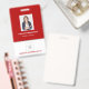 badge de nom de l'employé de l'immobilier moderne avec photo et logo. Conçu avec des couleurs rouges et blanches avec un endroit pour votre photo, logo, nom, titre et nom de l'entreprise. Parfait pour un Realtor, un Agent, un Broker ou tout professionnel dans le marché de l'immobilier. Utilisation pendant les journées portes ouvertes, les événements d'appréciation des clients et les visites à domicile.