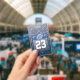 Faux parties scintillant scintille derrière un numéro de maillot audacieux. Mettez facilement à jour le numéro du footballeur sur le devant et personnalisez les informations sur le dos. Disponible dans d'autres couleurs brillantes d'équipe.