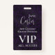 Élégant violet avec noir empreinte de léopard motif vip tous accès badge pour votre prochain événement d'affaires, grand ouverture, concert, fête d'entreprise avec typographie personnalisable dans la police de script tendance et personnalisée avec votre nom d'entreprise, événement et informations de médias sociaux.