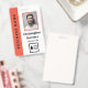 Badge vertical d'employé de bureau avec un design minimaliste propre en orange, noir et blanc. Ajoutez une photo de l'employé ainsi que son nom et sa profession. Personnalisez davantage avec votre logo d'entreprise et le nom de l'entreprise.