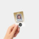 Gold - Un design d'entreprise personnalisé de base qui met en évidence les logos de votre bureau et le nom de votre employé. Vous pouvez ajouter un code à barres d'analyse à l'avant et à l'arrière.