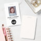 Blanc - Un design d'entreprise personnalisé de base qui met en évidence les logos de votre bureau et le nom de votre employé. Vous pouvez ajouter un code à barres d'analyse à l'avant et à l'arrière.
