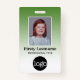 Vert - Un design d'entreprise personnalisé de base qui met en évidence les logos de votre bureau et le nom de votre employé. Vous pouvez ajouter un code à barres d'analyse à l'avant et à l'arrière.