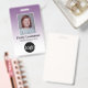 Purple - Un design d'entreprise personnalisé de base qui met en évidence les logos de votre bureau et le nom de votre employé. Vous pouvez ajouter un code à barres d'analyse à l'avant et à l'arrière.
